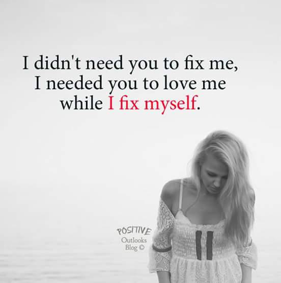 I have learned through my own life and experiences that as much as we may want to fix people in our lives, that’s just not possible. Change comes from within us. This coming from someone who was pretty broken. Many tried to change or save me, unsuccessfully. Change only happened when I was ready for it. When I was ready to embrace it and willing to put in the work for it. We all have our own dysfunctions, insecurities, fears and flaws. The best type of partner is the one patient enough to stick around, support from the sidelines and love you unconditionally, until the day you can love yourself that way.
